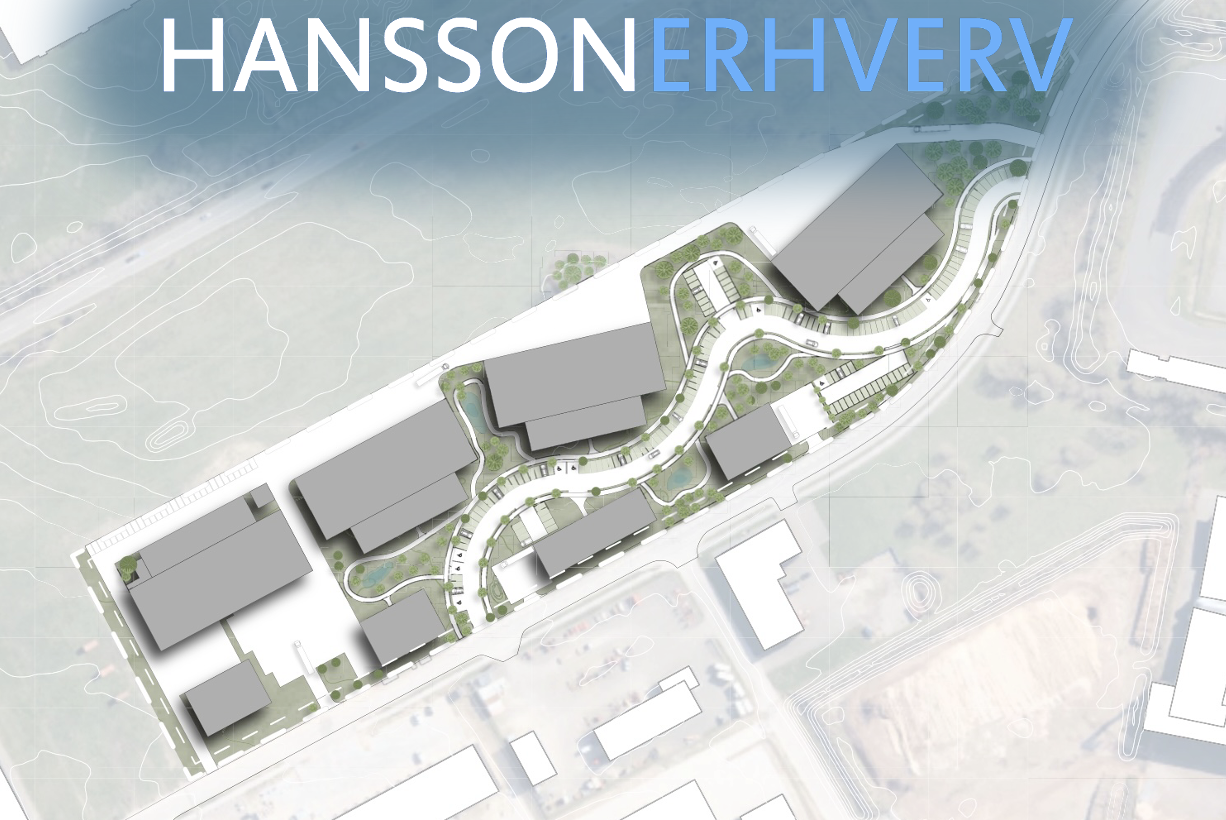 Hansson erhvervspark giver mulighed for samlet 40.000 kvm administration med tilhørende produktions- og lagerlokaler, pladskrævende butik, udstilling eller højlager.